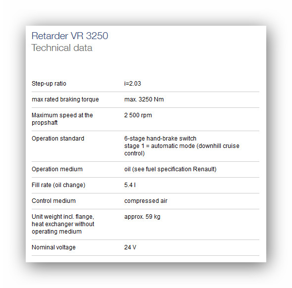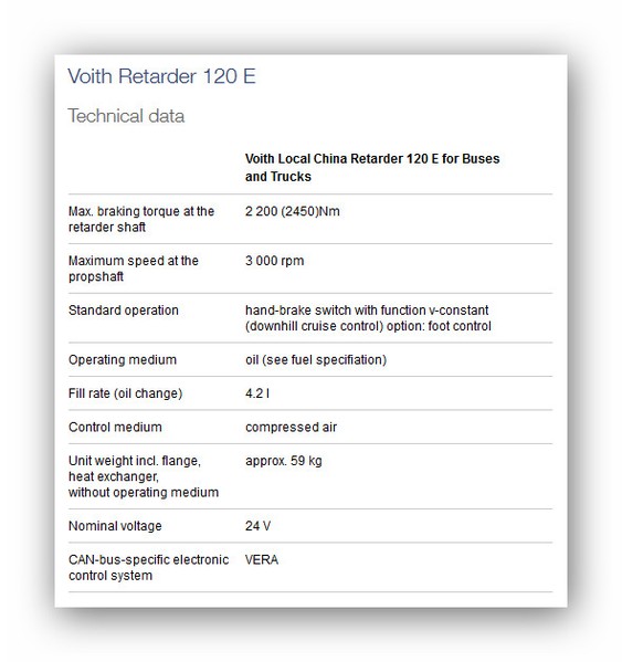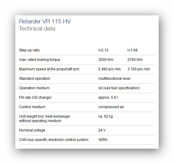 je určený pre všetky nákladné vozidlá a autobusy. Nie je to len brzda ktorá zastaví nákladné autá a autobusy. Ak sa používajú retardéry Voith, až 90% všetkých brzdových operácií možno dosiahnuť bez opotrebenia. Vaše brzdy s retardérom Voith sú vždy k dispozícii, keď sa dostanete do riskantnej situácie.